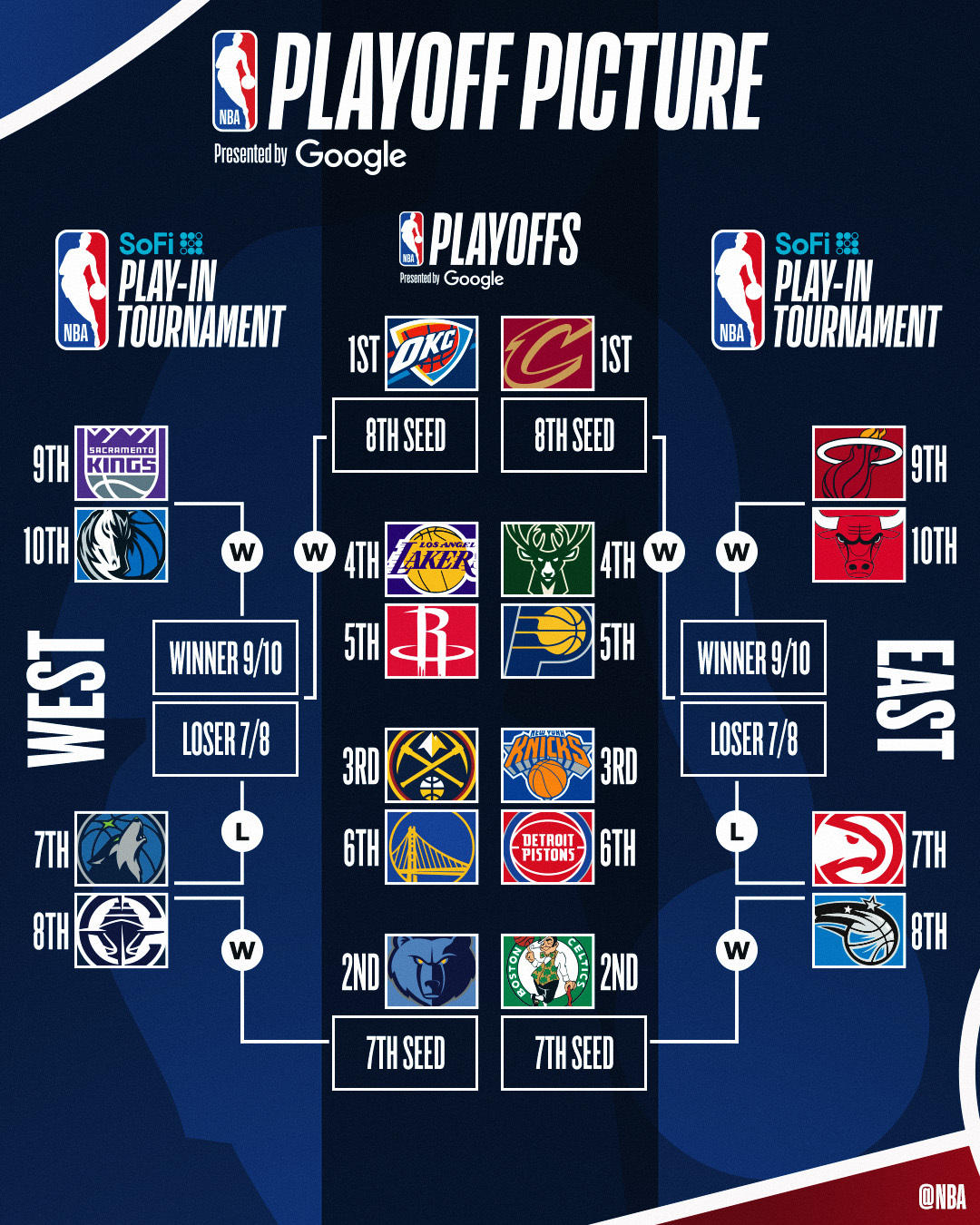 03月13日訊 今日,NBA官方社交媒體曬圖呈現若季后賽今日開打的各組對陣情況。