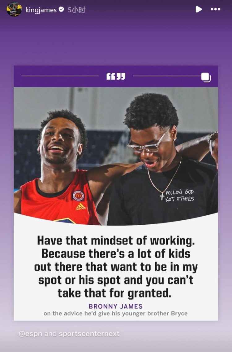 今天,湖人球星勒布朗-詹姆斯也轉發了布朗尼的言論。