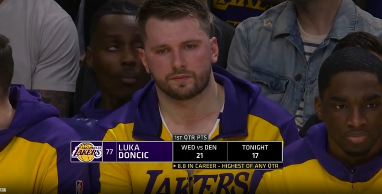 東契奇火力全開半場7三分爆砍29分 詹姆斯找狀態(tài) 湖人落后公牛3分