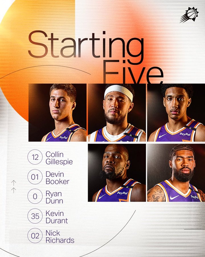 賽前太陽公布了本場首發陣容:吉萊斯皮、布克、瑞安-鄧恩、杜蘭特和理查茲。