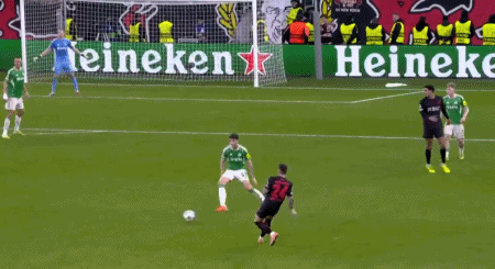 第13分鐘,角球開出,安德里希頭球打在吉馬良斯身上入網(wǎng),勒沃庫森1-0