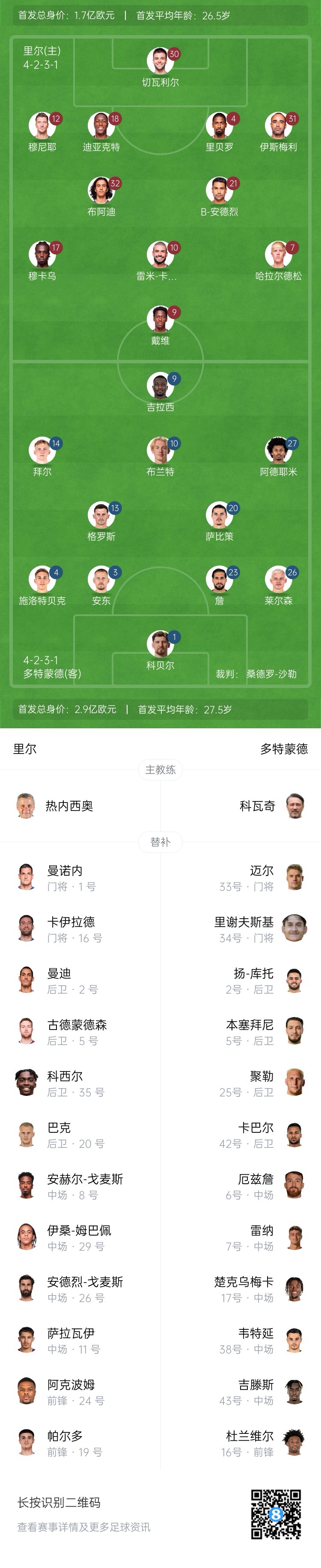 3月13日訊 歐冠16強次回合,里爾主場迎戰多特比賽即將打響。賽前首發出爐。