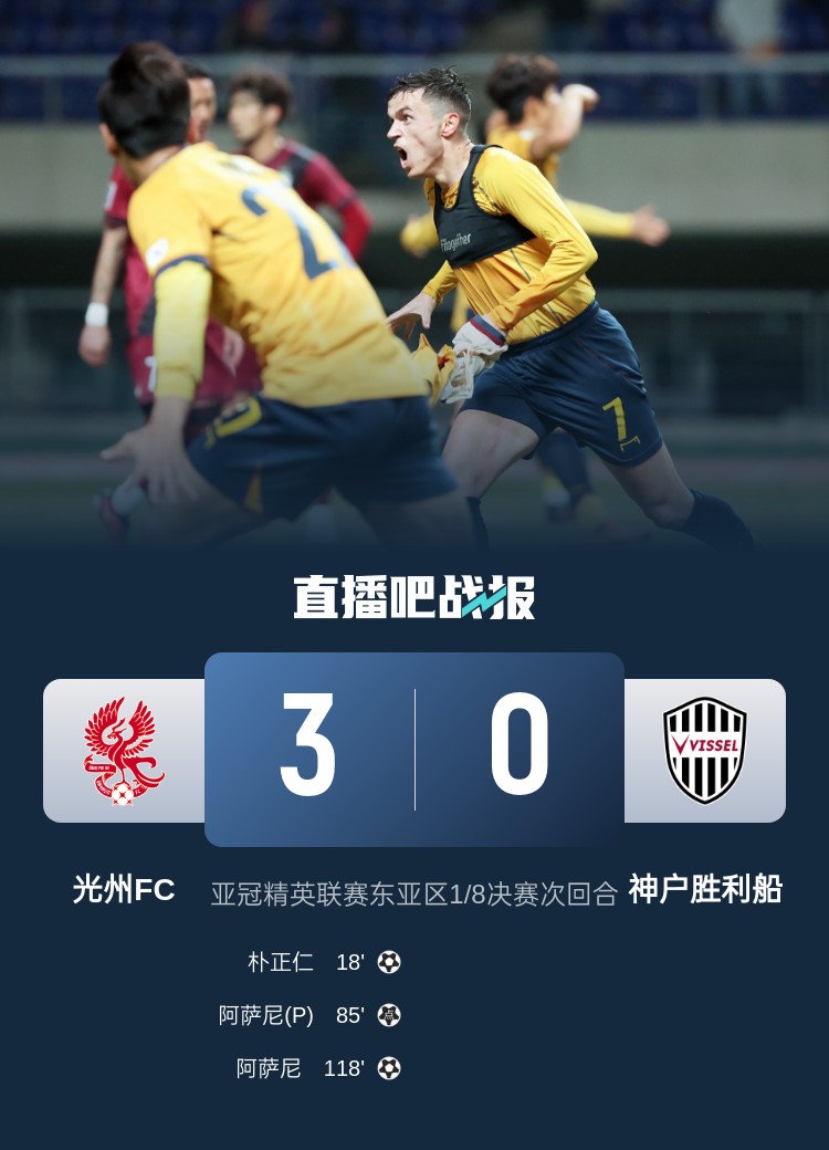 3月13日訊 亞冠精英聯賽1/8決賽次回合,光州FC在首回合客場兩球落敗的情況下,主場完成逆轉,以3-0的比分擊敗神戶勝利船,晉級下一階段。
