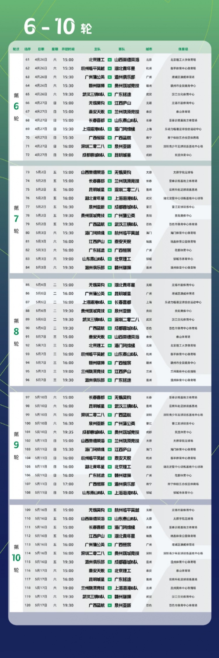 3月14日訊 中乙官方公布新賽季預(yù)賽階段賽程,共進行22輪264場比賽。