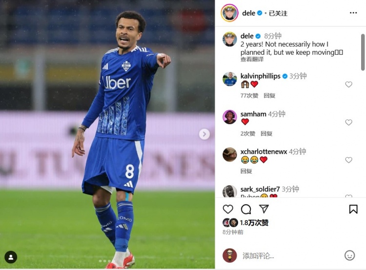 3月16日訊 科莫中場阿里今天在Instagram發文,他表示自己會繼續努力。