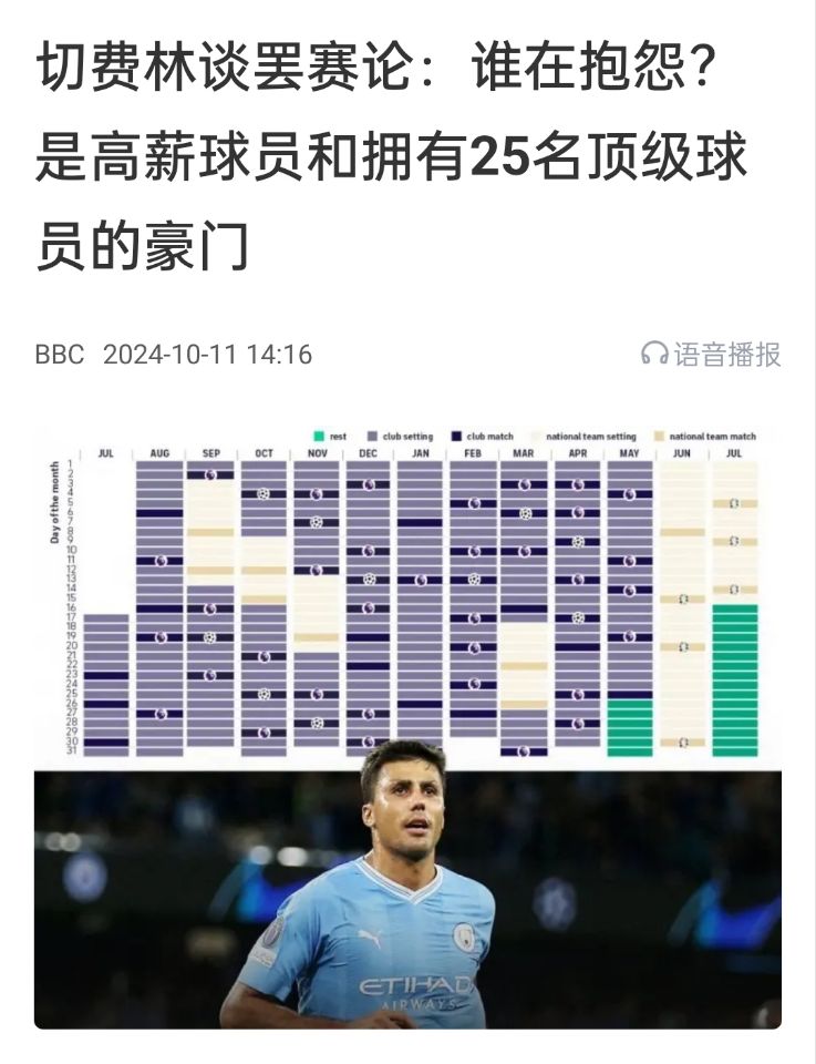切費(fèi)林還表示小球隊(duì)的聲音被忽視了:“那些薪水更低的球員和勉強(qiáng)湊足11人的球隊(duì)沒(méi)在抱怨,他們喜歡踢比賽。”