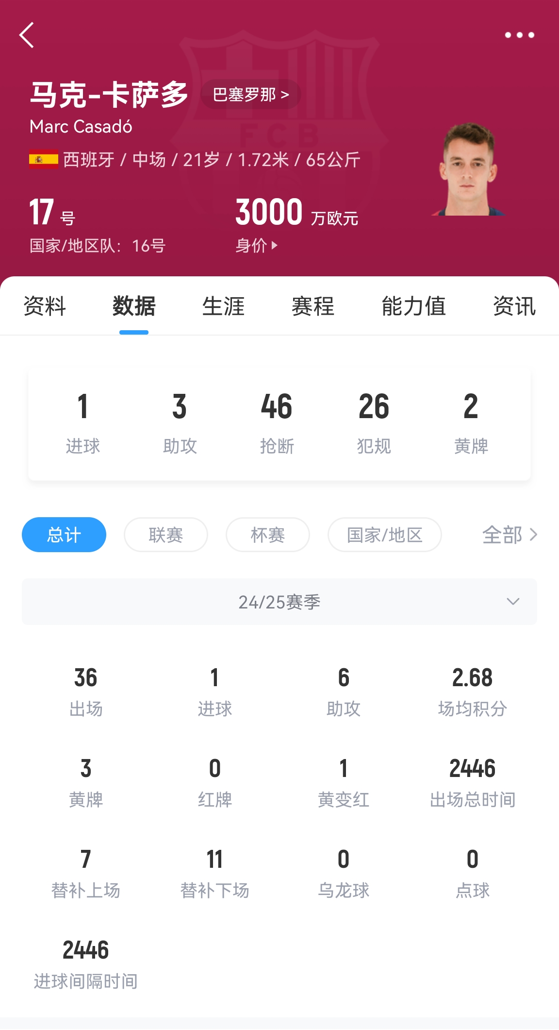 21歲的卡薩多本賽季出場36次,是巴薩重要的中場球員。在國家隊比賽日后,巴薩將迎來賽季沖刺階段,西甲方面與皇馬、馬競爭冠,國王杯對決馬競,歐冠對陣多特蒙德。