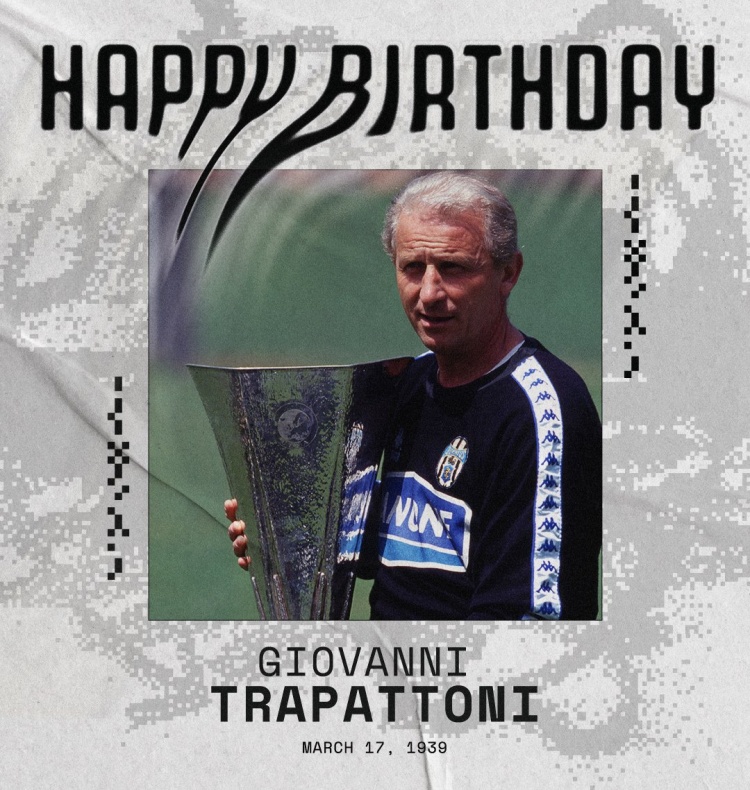 3月17日訊 今天是意大利知名教練特拉帕托尼的86歲生日,尤文和國米為他送上祝福。
