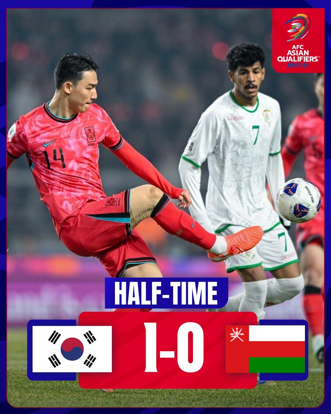 半場戰罷,韓國隊暫1-0阿曼隊。