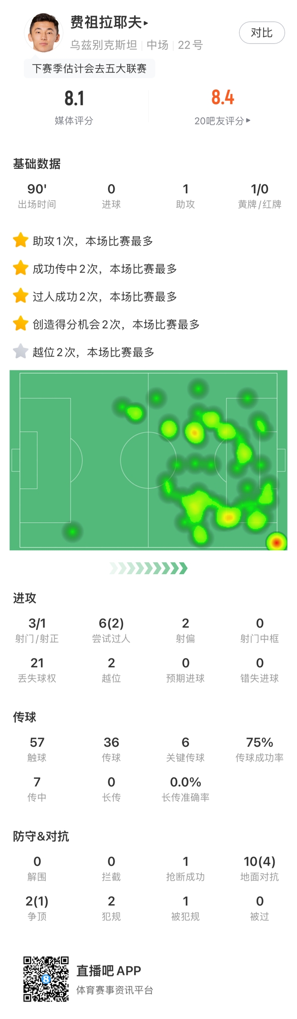 下一站五大聯(lián)賽?烏茲21歲中場費(fèi)祖拉耶夫1v6挑傳助攻,身價(jià)800萬