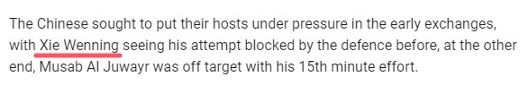 謝文“寧”是誰?亞足聯戰報中將Xie Wenneng寫為Xie Wenning