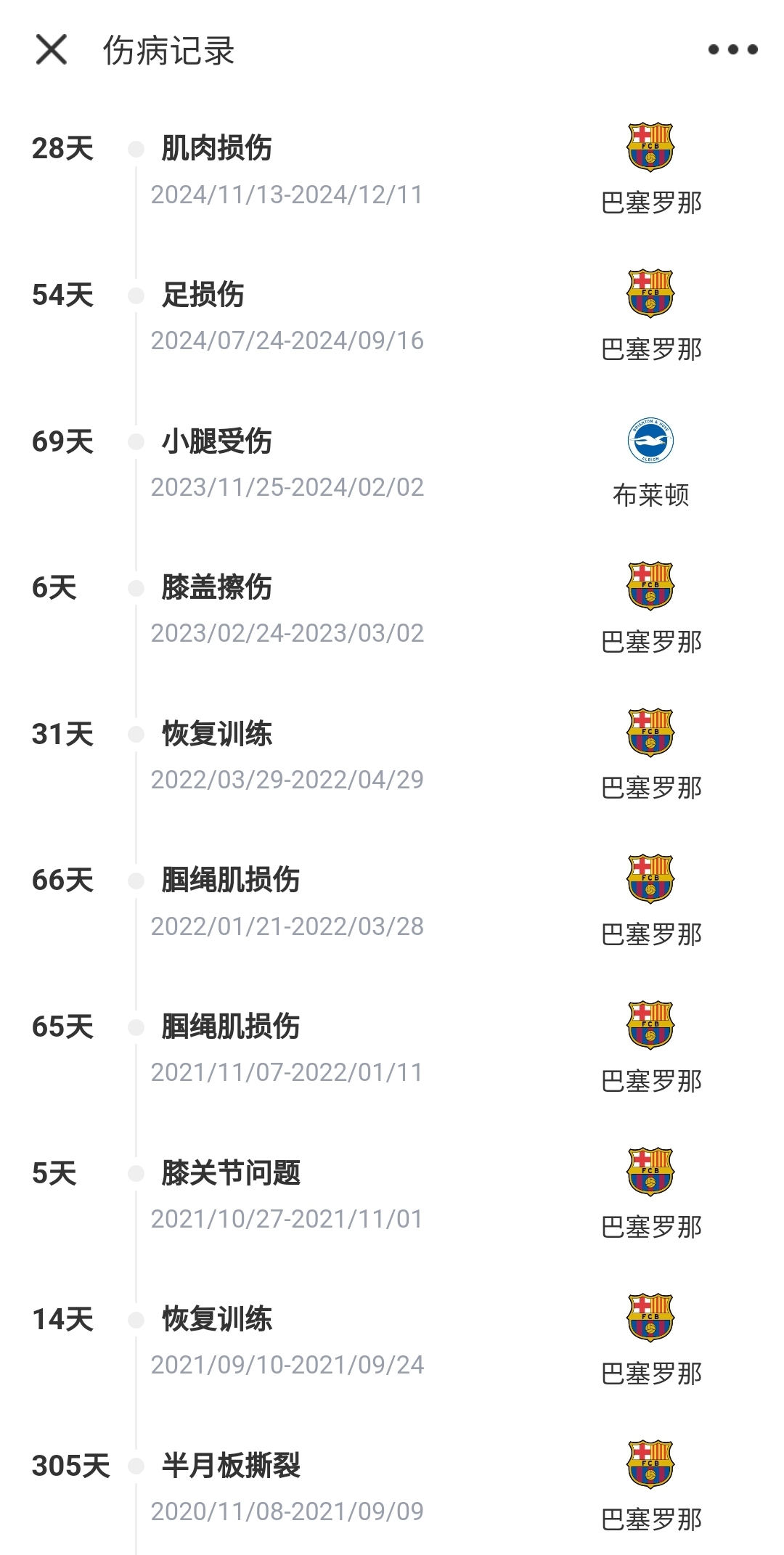 法蒂傷病記錄↓
