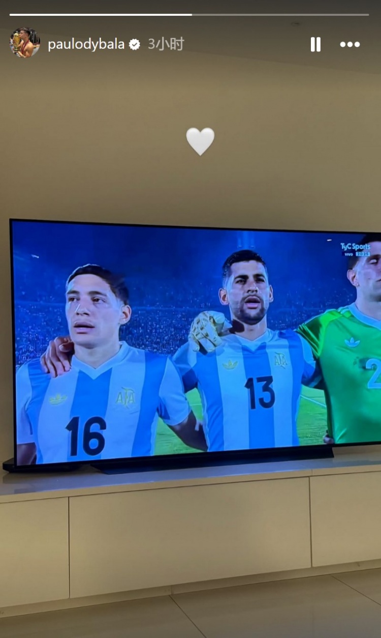 3月22日訊 南美區世預賽第13輪,阿根廷1-0擊敗烏拉圭。有傷在身的迪巴拉在家中收看了比賽,為阿根廷加油。