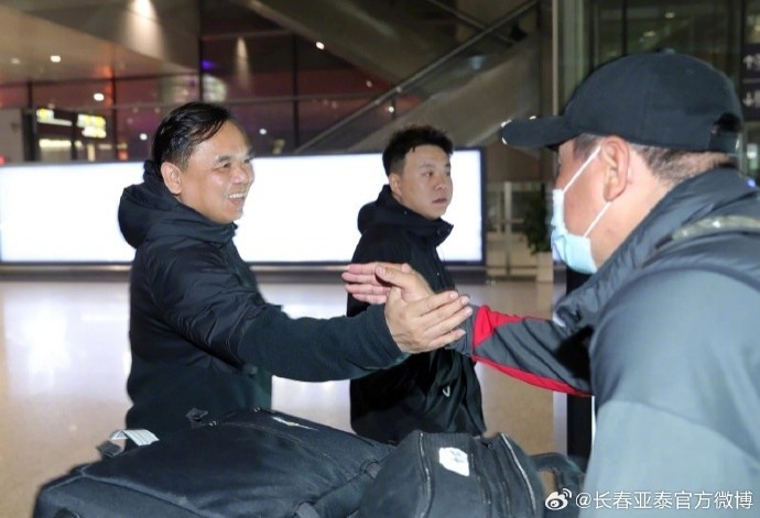 3月21日22時30分許,亞泰將士乘坐的QW6034航班飛抵長春龍嘉國際機場,俱樂部總經理曾皎峰前往機場迎接子弟兵回家,亞泰第12人也用一起戰斗的鼓聲溫暖著每一位亞泰將士。