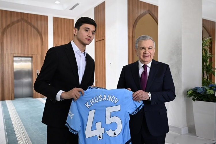 為國爭光!胡桑諾夫受烏茲別克斯坦總統接見,向對方贈送曼城球衣