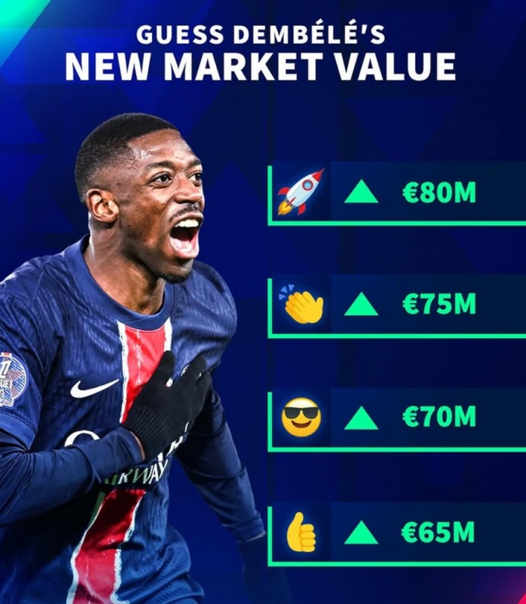 3月24日訊 登貝萊在進入2025年后狀態爆表,是同期五大聯賽進球最多的球員,《轉會市場》也確認他的身價將會顯著提升。
