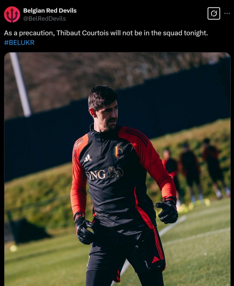 對此,比利時國家隊表示,作為預(yù)防措施,庫爾圖瓦沒有進入比賽陣容。
