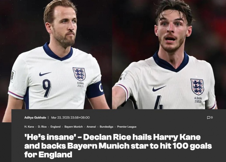 3月24日訊 英格蘭隊2-0戰勝阿爾巴尼亞的世預賽中,凱恩打進了代表三獅軍團的第70個進球。賴斯在談到凱恩時表示,凱恩一定能夠完成國家隊百球成就。