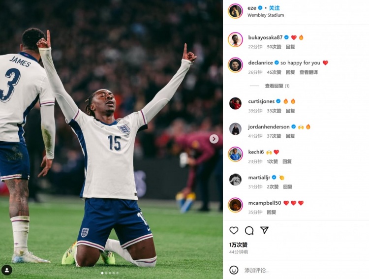 兩人也都在賽后通過(guò)社媒曬出自己的比賽照,但并未附加文字內(nèi)容。賴(lài)斯和霍爾等隊(duì)友紛紛送上鼓勵(lì):“為你感到高興”、“棒極了”…