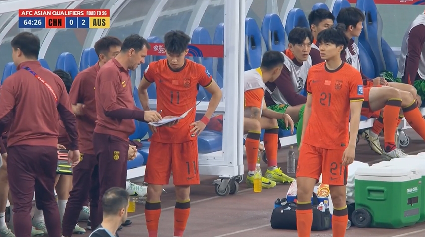 比賽第65分鐘,國足做出換人調整,王鈺棟、汪海健登場,換下謝文能、黃政宇。