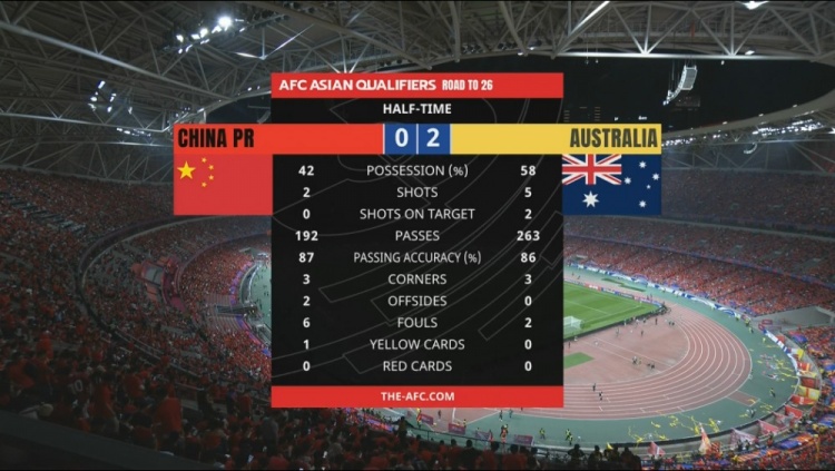 火熱的杭州球市并未給國足帶來好運,在事關18強賽走勢的最關鍵一戰中,國足上半場便0:2落后澳大利亞隊。在兩隊實力差距明顯的背景下,國足想在下半場后來居上,似乎沒有太多可能。