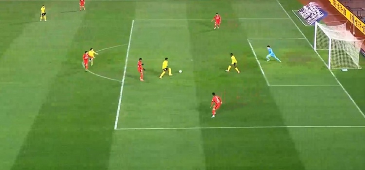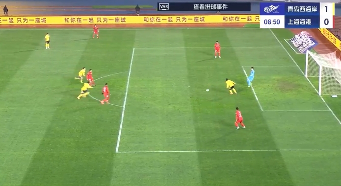 第6分鐘,西海岸前場(chǎng)左路搶斷后傳中,何龍海后點(diǎn)鏟射打偏,此球也越位了。↓