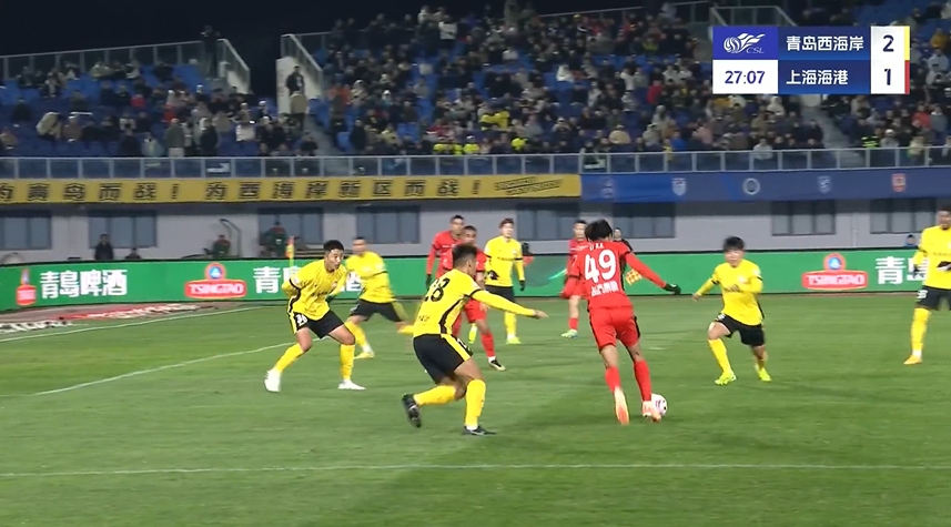 上半場(chǎng)比賽結(jié)束,上海海港客場(chǎng)暫時(shí)1-3落后青島西海岸。