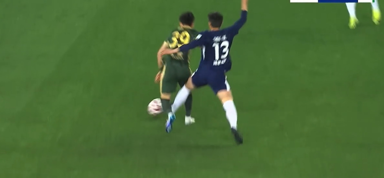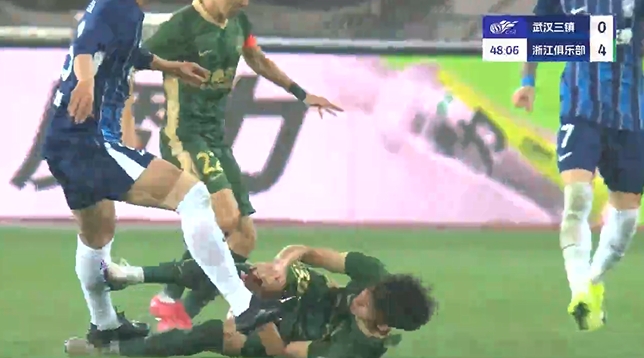 在比賽第47分鐘,鄭凱木從身后別倒王鈺棟,同時在王鈺棟倒地后,鄭凱木落地正好踩中王鈺棟腳踝,王鈺棟痛苦倒地,隨后受傷下場。