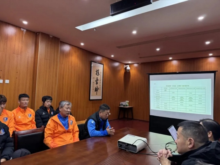 俱樂部執(zhí)行董事蘆寧江首先代表俱樂部歡迎球隊結(jié)束在外冬訓(xùn)返回瑞昌基地,然后向球隊詳細(xì)介紹了俱樂部的情況、部門機構(gòu)等,并重點傳達(dá)了江西省體育局、江西省足球協(xié)會2025賽季中國足球聯(lián)賽(江西賽區(qū))工作部署會議精神,強調(diào)嚴(yán)格落實聯(lián)賽工作“五見面,五到位”;狠抓賽風(fēng)賽紀(jì)建設(shè),做到誠信比賽、干凈比賽。