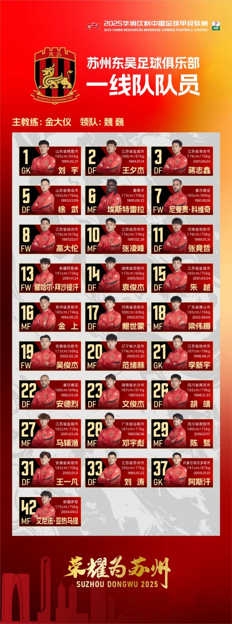 2025賽季蘇州東吳一線隊大名單正式公布!
